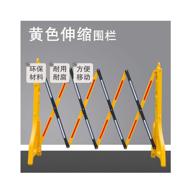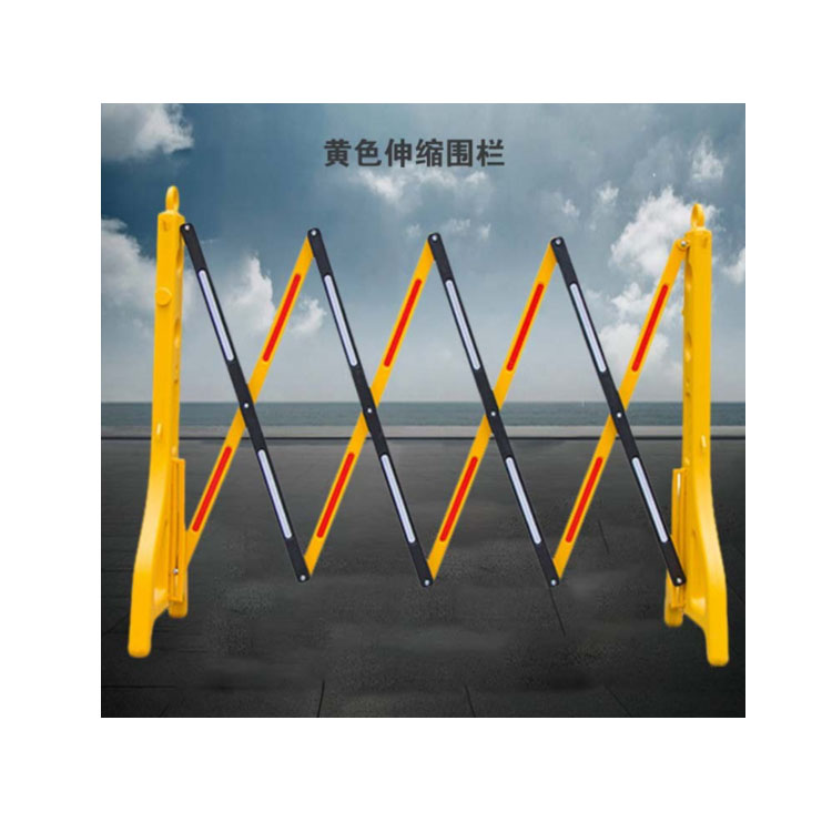 虹銘黃色伸縮圍欄內(nèi)部可灌入水或砂石增加重量和穩(wěn)定性