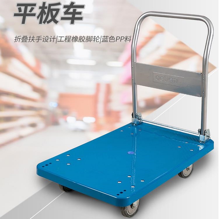 得力工具全新料平板車耐用手推車拉貨車小拖車四輪搬運車60*90cm
