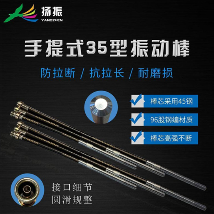 楊振70型優(yōu)質(zhì)振動棒可作為驅(qū)動裝置采用軟管傳動方式,方便施工,遠(yuǎn)離動力(包括電機),不帶電,安全保險,沒有空載燒機的弊病,性能可靠穩(wěn)定。