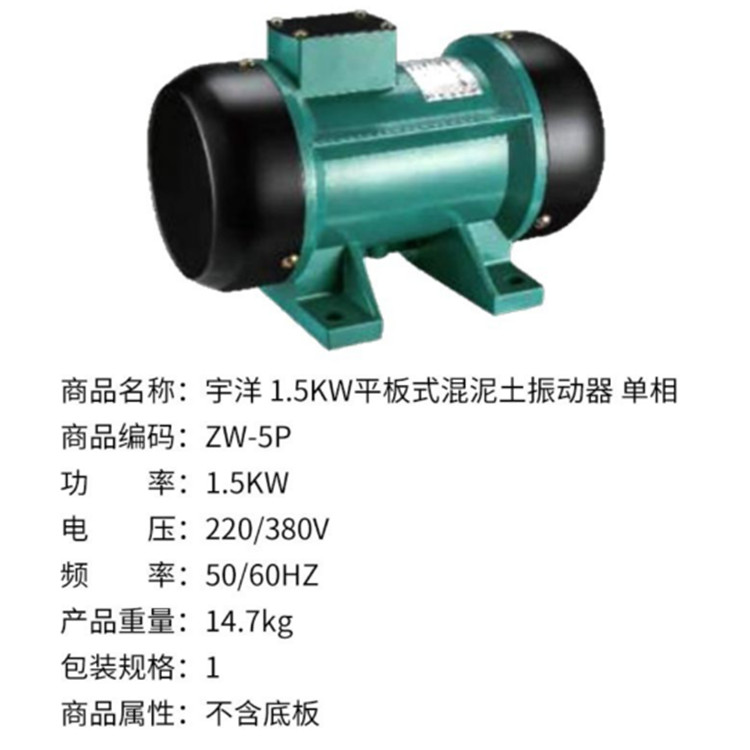 宇洋 1.5KW平板式混泥土振動器 單相ZW-5P是廣泛使用于道路、橋梁、隧道、樓層基礎和各種混凝土梁柱及預制構件現場澆注施工的重要工具。
