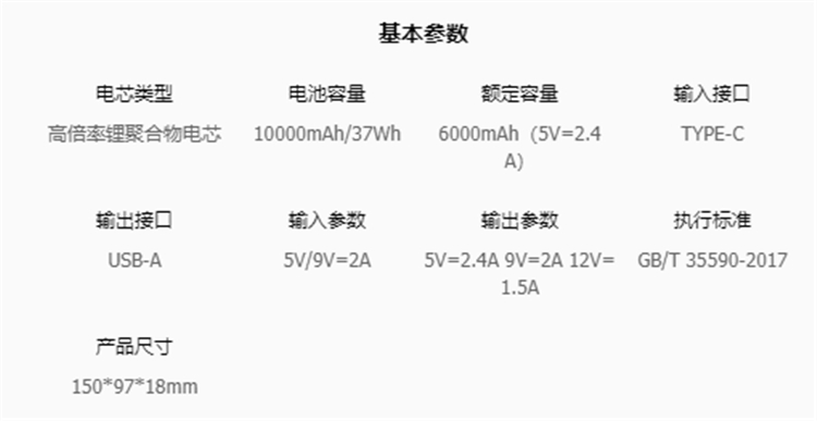公牛移動電源(快充版)基本參數圖