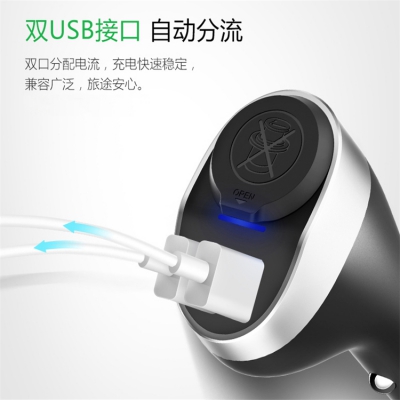 公牛汽車手機車充器雙USB接口,自動分流,充電快速穩定,兼容廣泛,旅途安心。