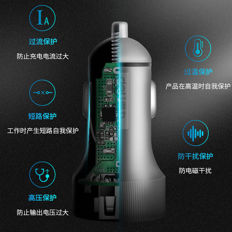 車載USB充電器多重電路保護,充分保護您的手機電池和愛車