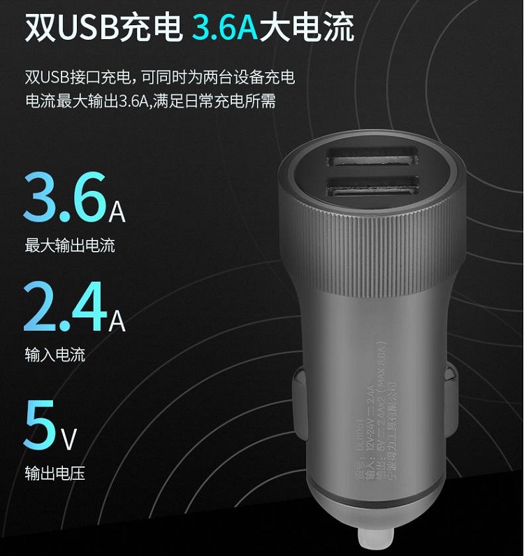 USB車載充電器采用鋁合金材質,安全,耐摔,散熱性好