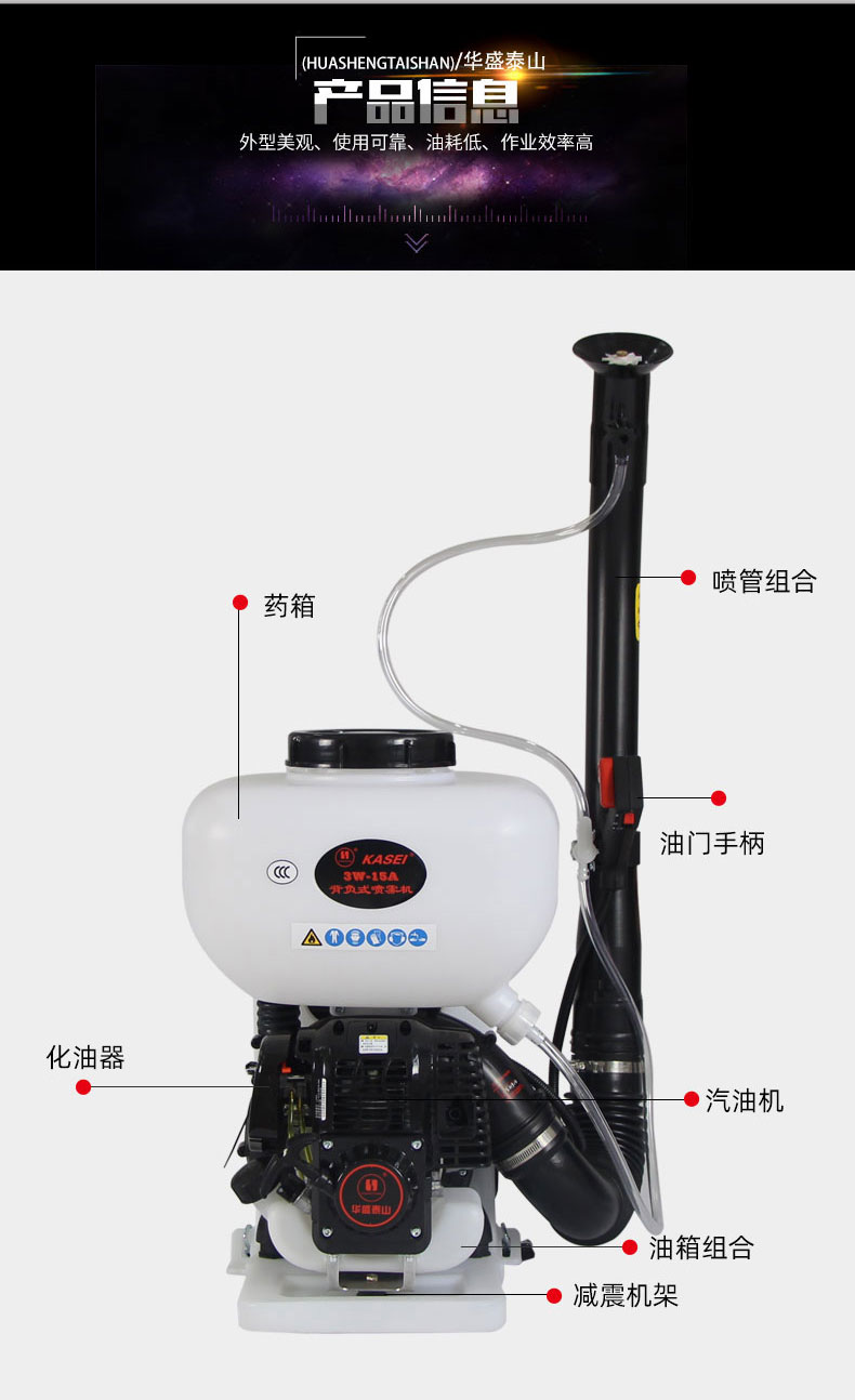 華盛泰山3W-15A噴霧器四沖程背負式噴霧機農用大棚葡萄汽油打藥機