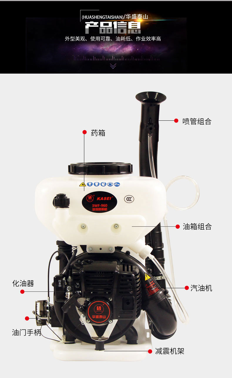 華盛泰山3WF-960機動噴霧器汽油噴霧機果樹打藥機農用消殺彌霧機
