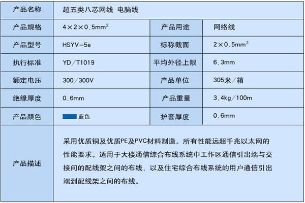 超五類八芯網線參數(shù)展示圖