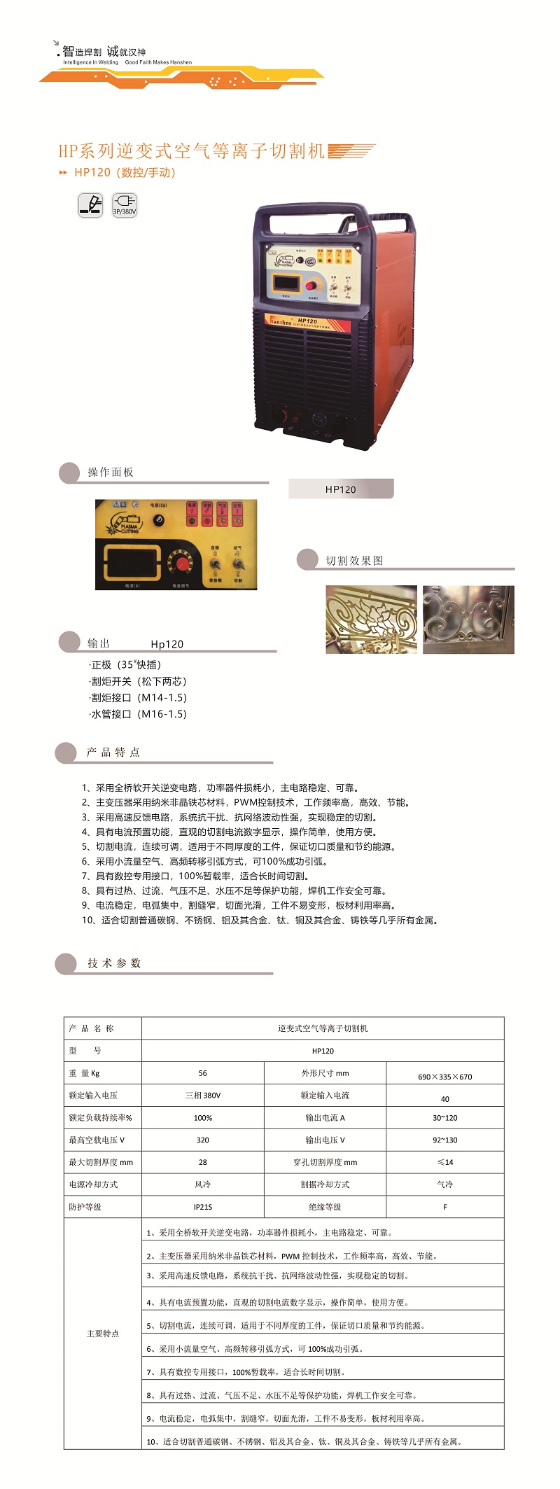 HP120逆變式空氣等離子切割機