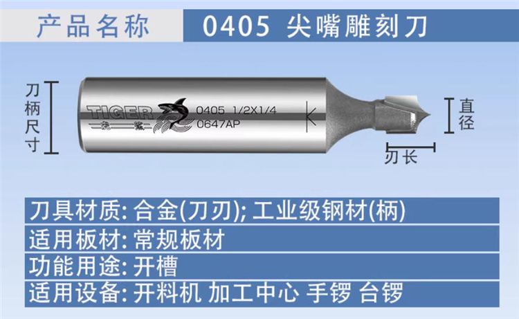 虎鯊0405尖嘴雕刻刀線條修邊開槽倒圓弧木工銑刀
