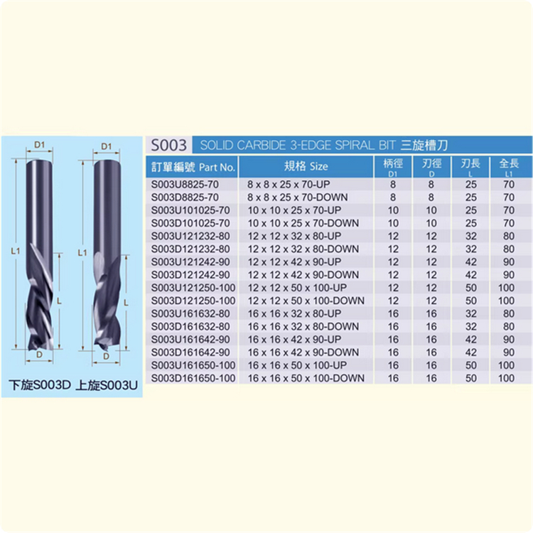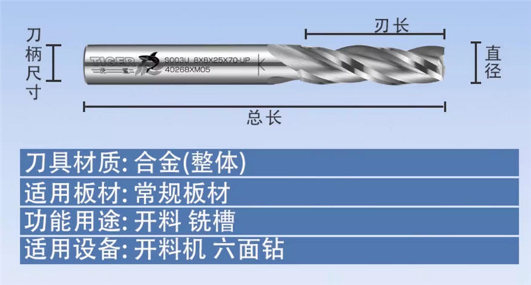 虎鯊S(chǎng)003三旋槽刀 整體合金TCT螺旋銑刀木工板材單貼面開(kāi)料拉槽