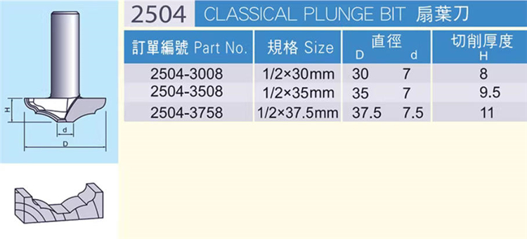 虎鯊2504扇葉刀 木工家具櫥柜吸塑門板花式線條開槽修邊刀