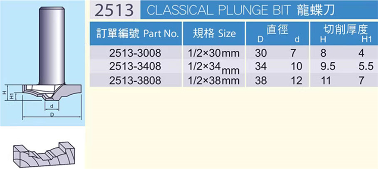 虎鯊2513龍蝶刀 木工家具櫥柜吸塑門板花式線條開槽修邊刀