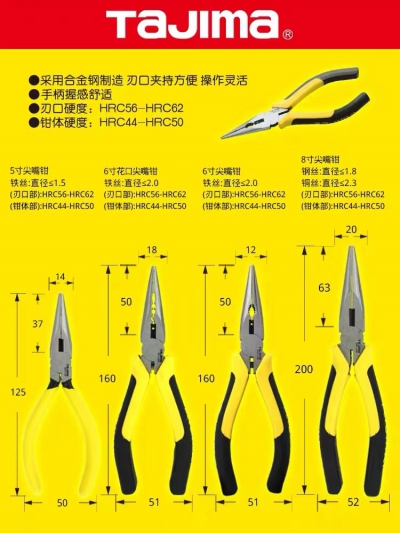 tajima/田島尖嘴鉗子5寸6寸8寸合金鋼釣魚鉗耐用正品