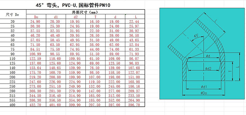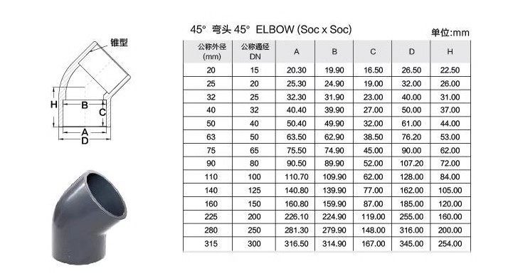 UPVC45度彎頭國標(biāo)化工給水排水管道PVC管135deg塑料配件DN40