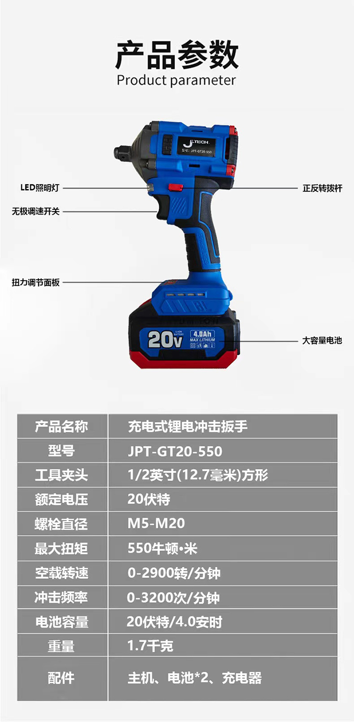 捷科JETECH鋰電沖擊扳手JPT-GT20-550 JPT-GT20-750
