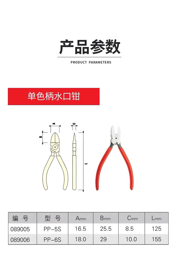 - 型號名稱PP-5S 5單色柄水口鉗