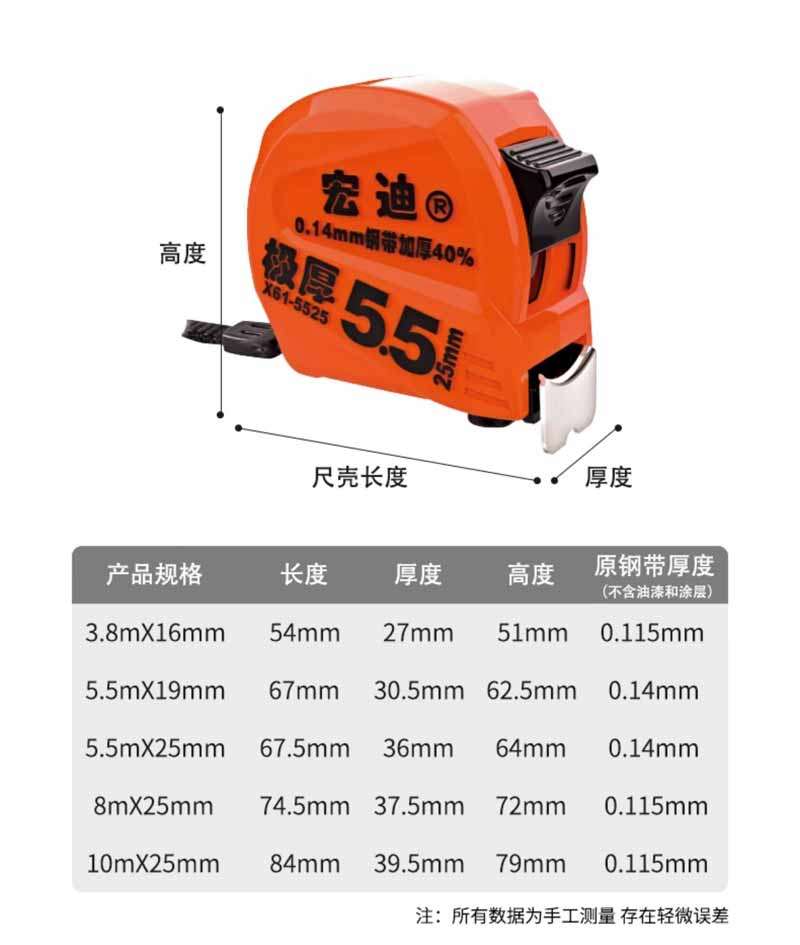 首頁工業五金測量工具卷尺宏迪(ASSIST)X61/69/S69極小超耐磨3M5.5米8M10M鋼卷尺