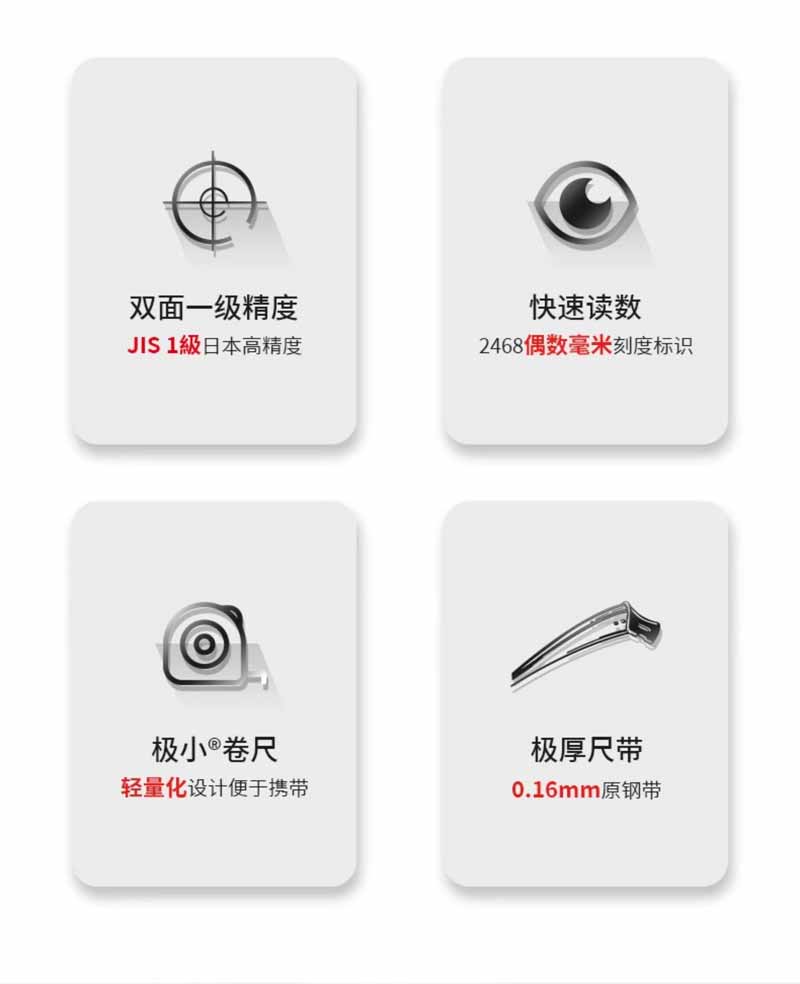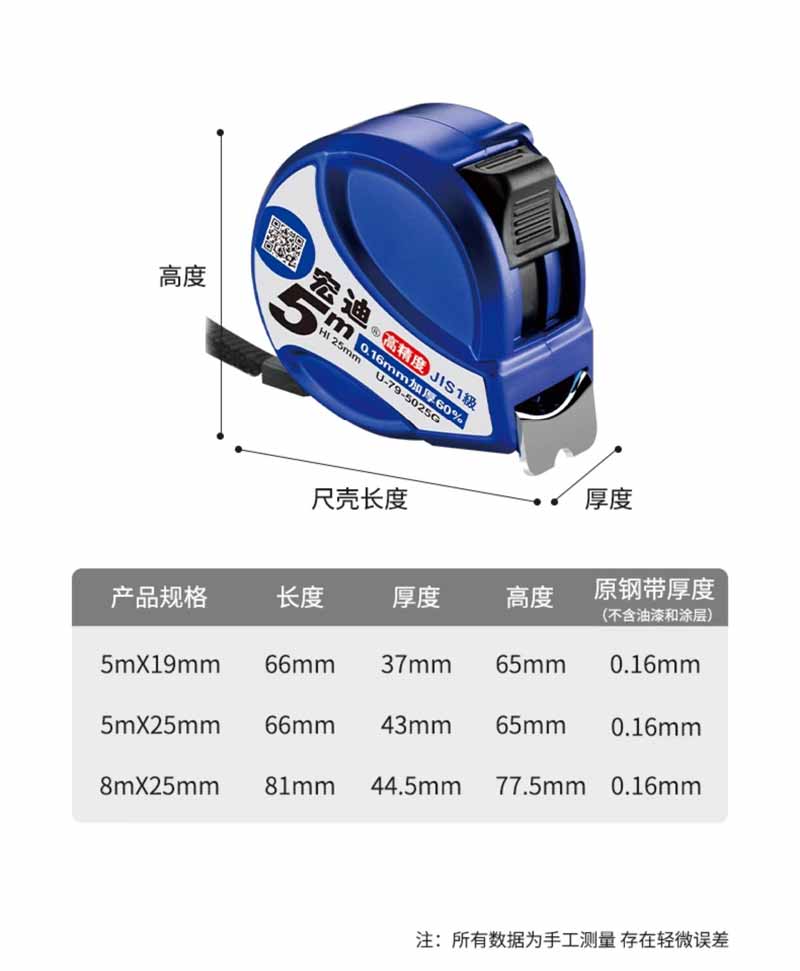 首頁工業(yè)五金測量工具卷尺宏迪(ASSIST)U79極小極厚系列5米8M雙面一級鋼卷尺