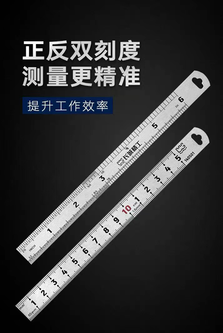 長城精工鋼直尺一米鋼尺1米15cm不銹鋼鋼板尺600mm加厚剛尺子30cm