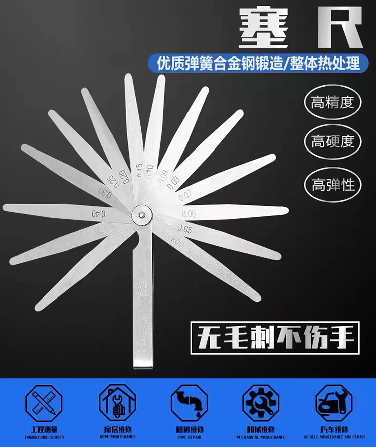 長(zhǎng)城精工塞尺篩尺不銹彈簧鋼高精度17片0.02-1.0mm200間隙尺塞片
