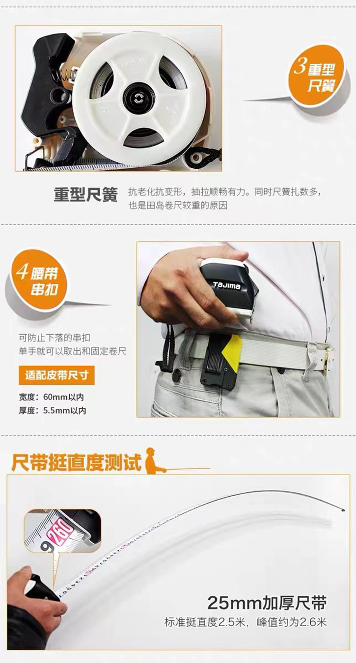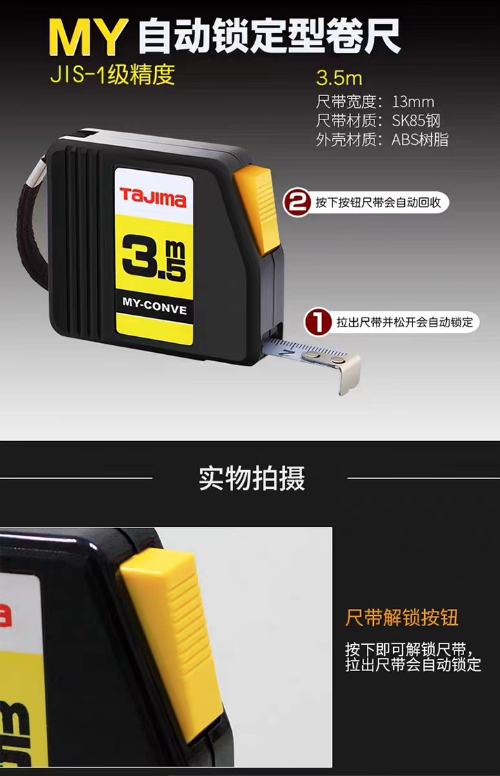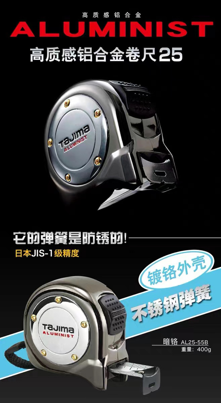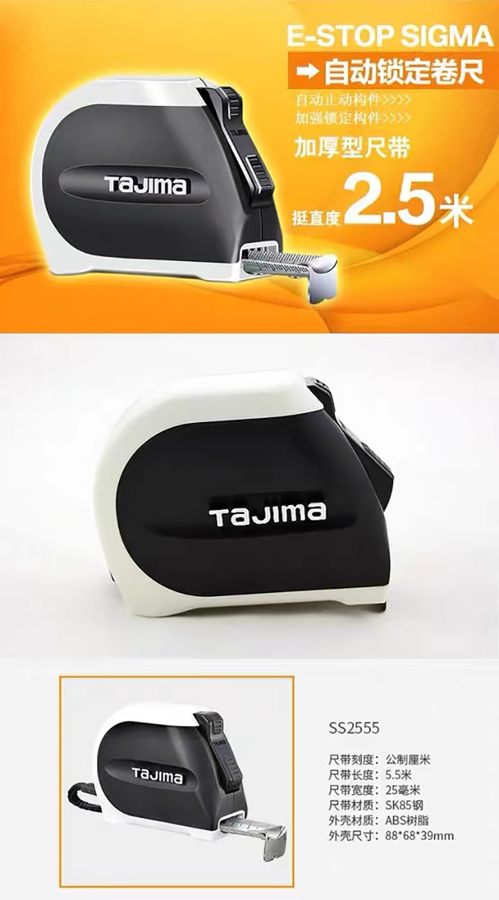 日本田島卷尺3.5米/5米/5.5米公制雙面刻度鋼卷尺盒尺木工測量工具