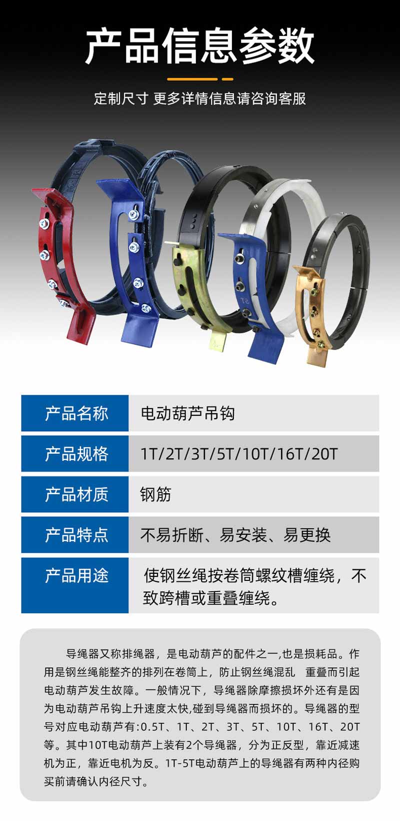 電動葫蘆導繩器 1/2/3/5/10噸天車排繩器行車活口電動葫蘆排繩器