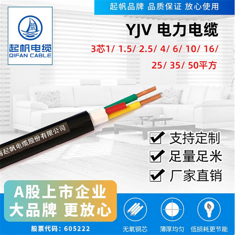 起帆(QIFAN)YJV-0.6/1KV-3芯 電力電纜 YJV3*6 10米