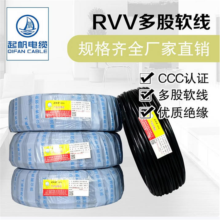 起帆(QIFAN)電線電纜 RVV2芯護套線 色 RVV 2*0.5