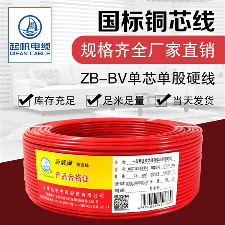 起帆(QIFAN)電線電纜 阻燃ZB-BV 家裝照明插座電線