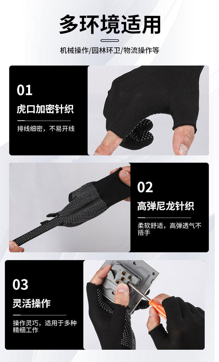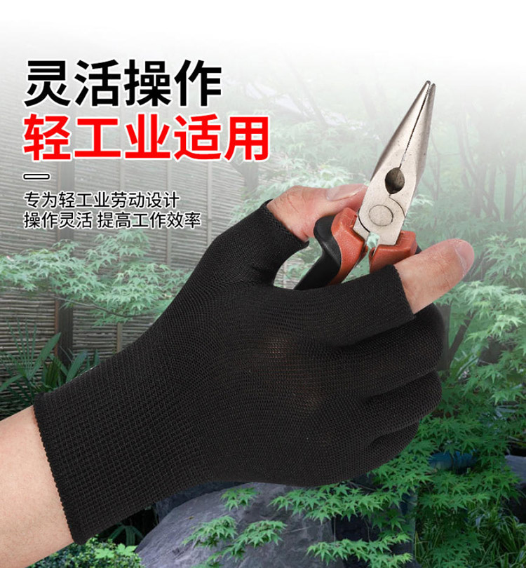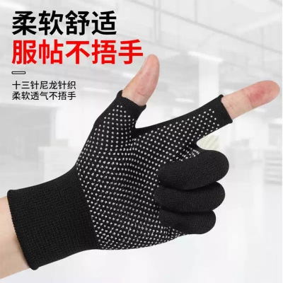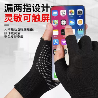薄款打包手套快遞員分揀專用勞保耐磨工作男女干活露二指防滑點膠